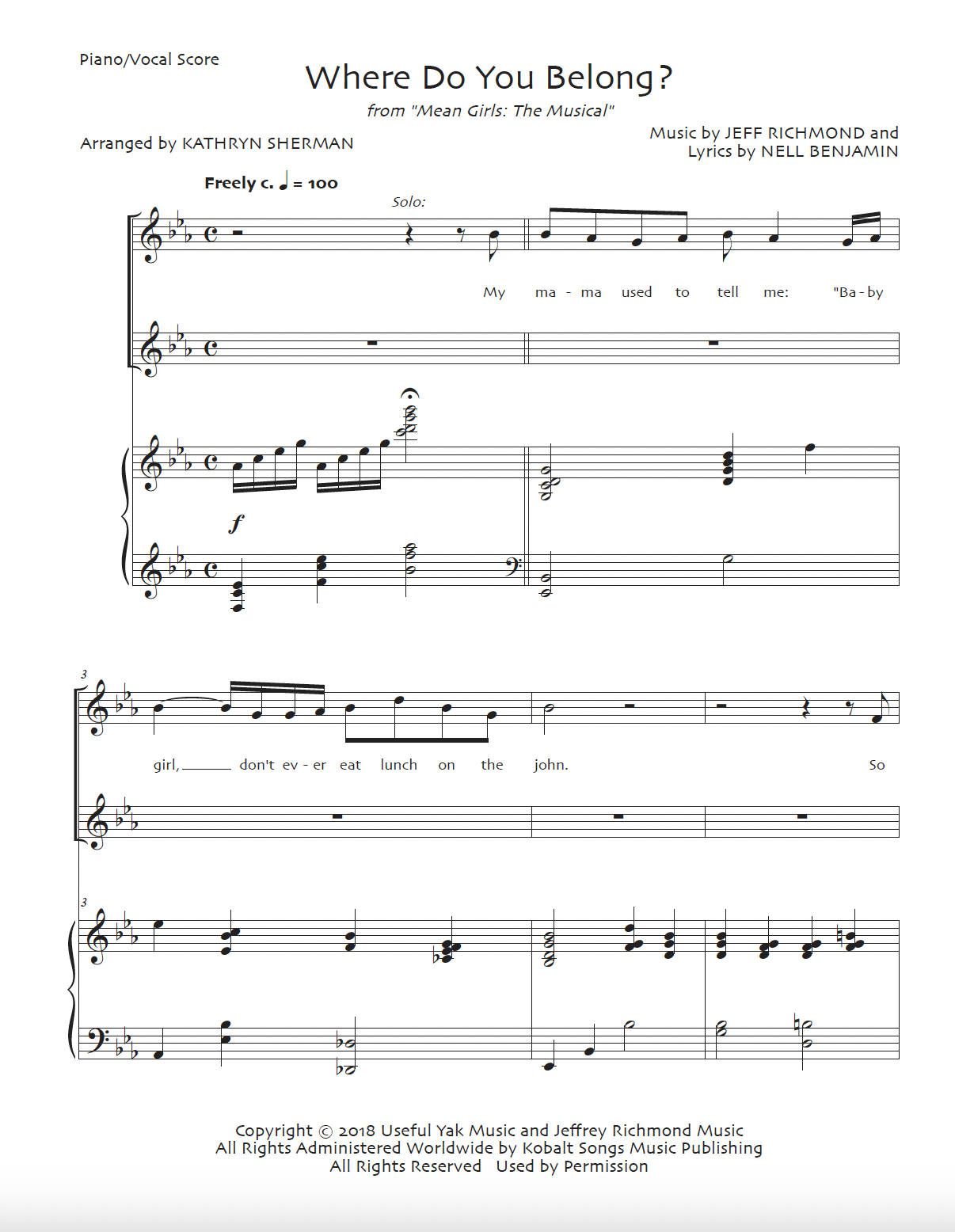 This upbeat song from Mean Girls: The Musical has been adapted for contemporary choirs, maintaining many of the fun tempo and rhythmic feel changes from the original, but making it more accessible (and appropriate!) for younger singers.